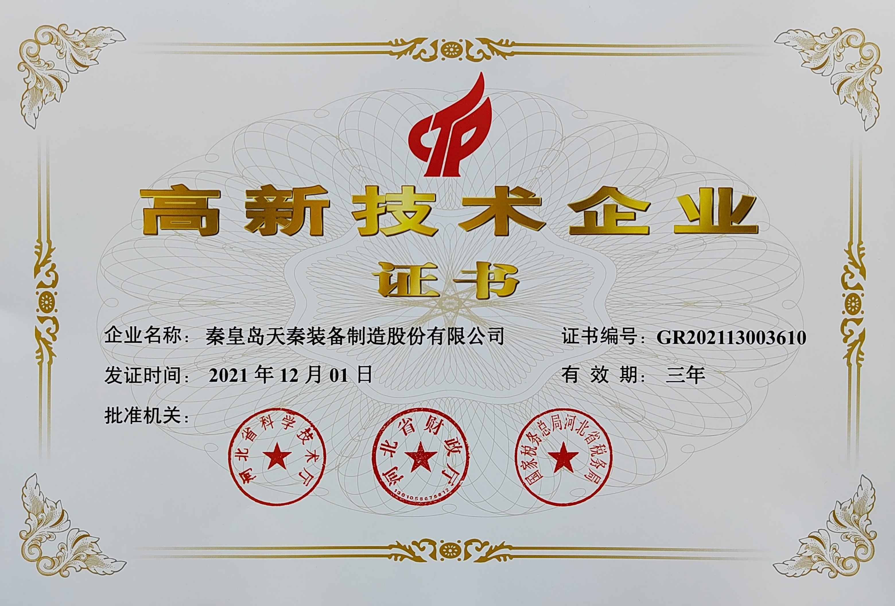 • 秦皇島天秦裝備制造股份有限公司創(chuàng)立于1996年,總部位于河北省秦皇島市經(jīng)濟技術(shù)開發(fā)區(qū),秦皇島廠區(qū)占地4萬平方米,擁有3萬平方米的標準廠房、辦公樓和工程技術(shù)研發(fā)中心;分部天津廠區(qū)位于天津市靜海經(jīng)濟開發(fā)區(qū),占地2萬平方米,擁有1.6萬平方米標準廠房。 公司通過了GB/T 19001質(zhì)量管理體系及GB/T 24001環(huán)境管理體系認證,是國家高新技術(shù)企業(yè)、河北省軍民融合產(chǎn)學(xué)研用創(chuàng)建基地,建有省級院士工作站。